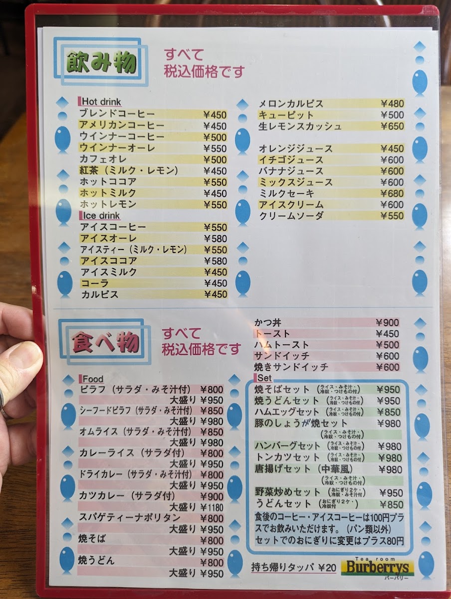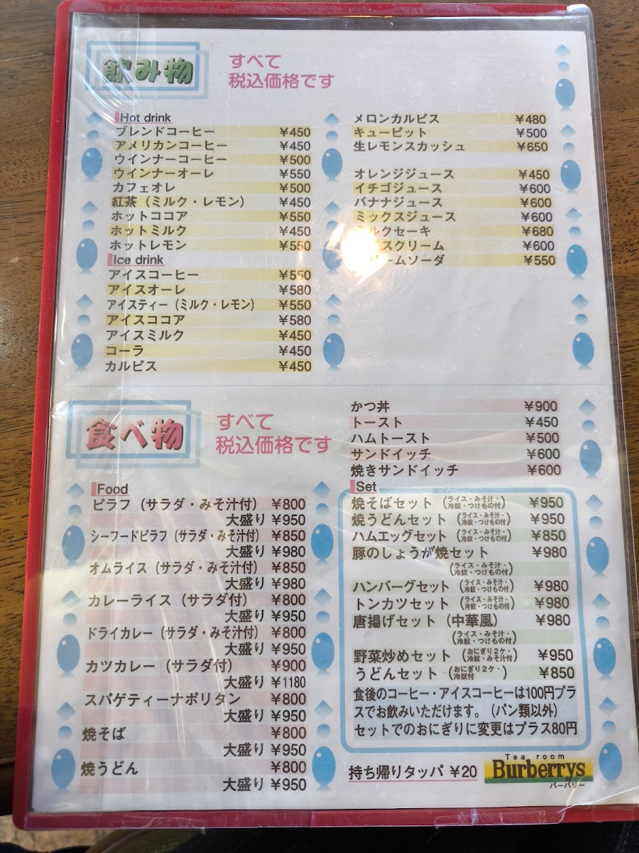 Welcome to Burberrys', a beloved café nestled in Kurashiki, Okayama. This charming establishment captures the essence of a classic Japanese coffee shop, loved by locals for its homey atmosphere and generous portions. Burberrys' menu impresses with hearty offerings such as the **Katsu Curry** and **Yakisoba Set Meal**, both served in abundance and accompanied by fresh salads and side dishes. Customers rave about the delightful balance between flavors, with tender meats and subtly seasoned vegetables, ensuring every bite is satisfying.